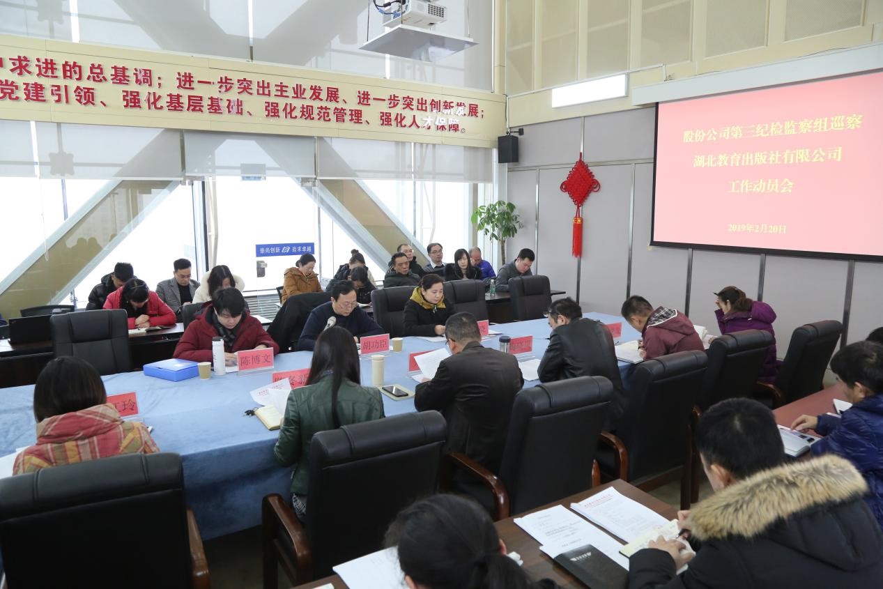 2月20日上午,股份公司第三紀檢監察組進駐教育社召開巡察工作動員會。股份公司第三紀檢監察組組長胡功臣、紀檢監察組成員鎮曉、陳博文,教