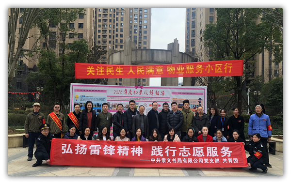 在春暖花開、熱情洋溢的陽春3月,為推動“學雷鋒”活動的深入開展,弘揚中華民族傳統美德,中共崇文書局有限公司黨支部、共青團于3月4日組織全體黨員及共青團員在中建福地星城小區發起“弘揚雷鋒精神,踐行志愿服務”為主題的便民志愿服務活動。