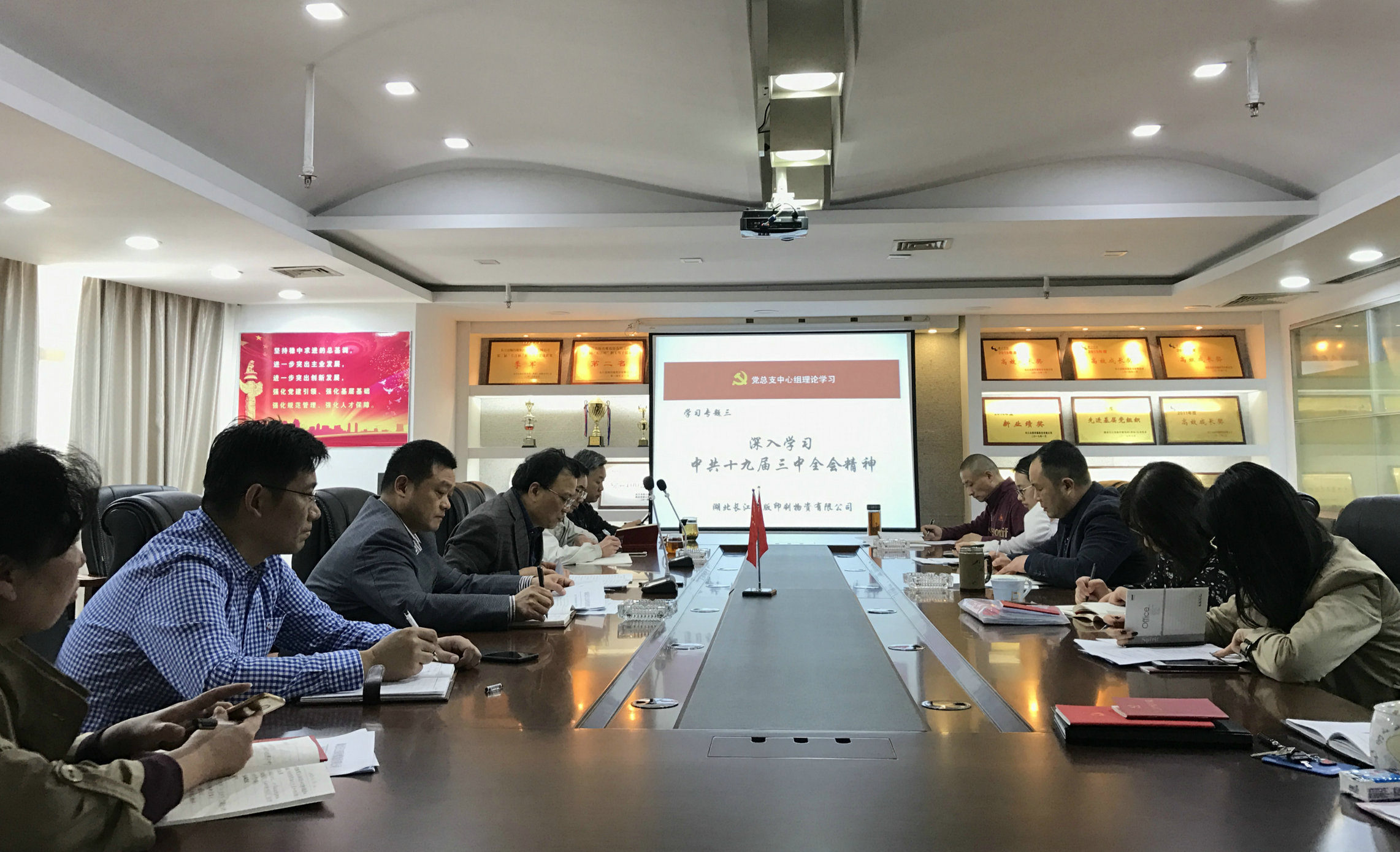 3月1日下午,湖北省新華印刷產業園有限公司黨委中心組召開學習會議,傳達學習黨的十九屆三中全會精神,強調要把思想和行動統一到三中全會精神特別是習近平總書記的重要講話精神上來,深刻認識深化黨和國家機構改革的重大意義,把抓改革舉措落地作為重大政治任務和重要政治責任,確保黨中央決策部署不折不扣落到實處。公司黨委書記、總經理徐曙初主持了會議。