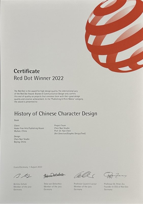 喜報|《中國漢字設計史》獲德國紅點獎和意大利A'Design Award & Competition銀獎