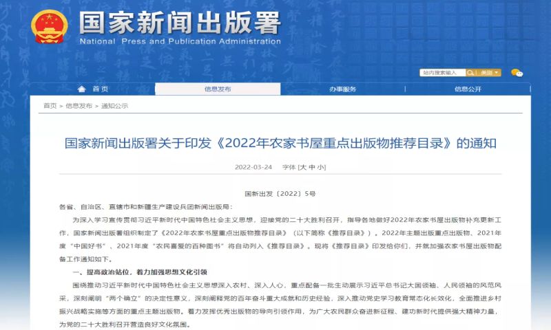 長少社8種圖書入選《2022年農(nóng)家書屋重點出版物推薦目錄》