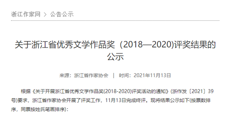 長少社《三十六只蜂箱》獲 “浙江省優秀文學作品”獎