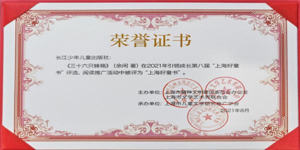 ?近日,第八屆“上海好童書”頒獎典禮在上海市文聯舉行,長江少年兒童出版社的《三十六只蜂箱》(余閑 著)獲得“上海好童書”獎,《溫妮的花園》(英娃 著)獲得入圍獎。