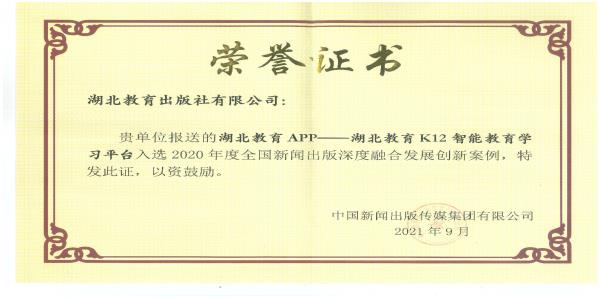 “湖北教育App”榮獲2020年度全國新聞出版深度融合發展創新案例