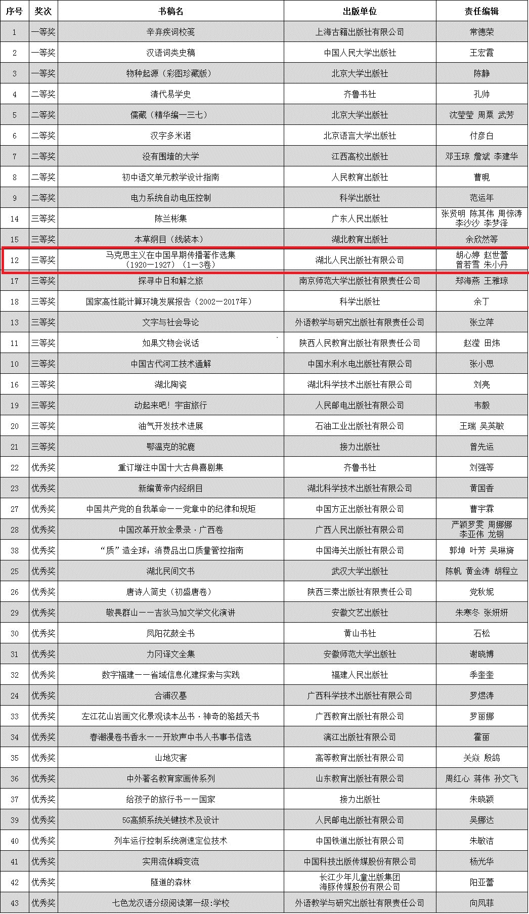 人民社《馬克思主義在中國早期傳播著作選集》獲第六屆優秀審讀報告三等獎