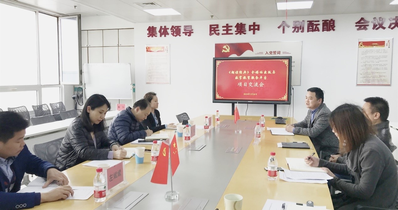 2019年3月26日,湖北人民出版社與湖北博盛數字教育服務有限公司就《朝讀經典》全媒體出版與數字教育服務平臺二期開發、項目結項驗收、市場運營推廣等問題召開項目交流會。