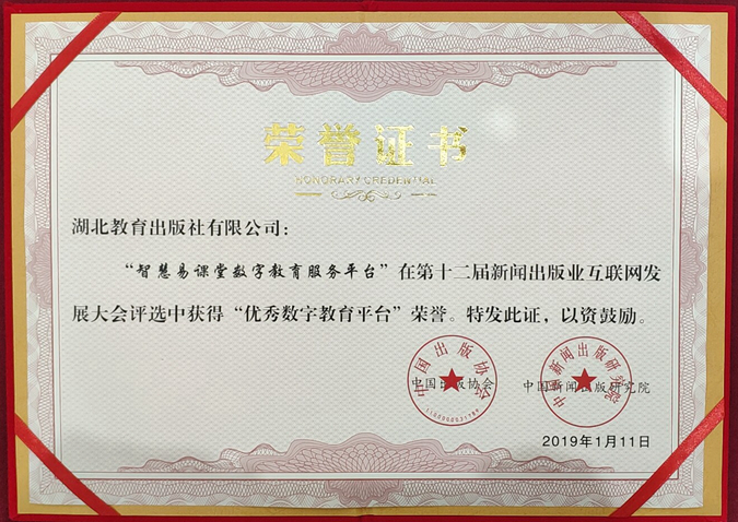 1月11日,第十二屆新聞出版業互聯網發展大會在京拉開了序幕。湖北教育出版社“智慧易課堂數字教育服務平臺”在大會評選中獲得“優秀數字教育平臺”榮譽。