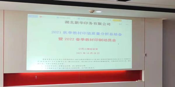 2021年10月28日上午,新華印務召開2022年春季教材印制動員會,明確和強化質量管理責任,動員員工齊心協力,保質保量完成春季教材印制任務。會議由公司黨委委員、副總經理田云超主持,黨委副書記、總經理徐曙初及生產分公司負責人、質量員,相關職能部門管理人員參加了會議。