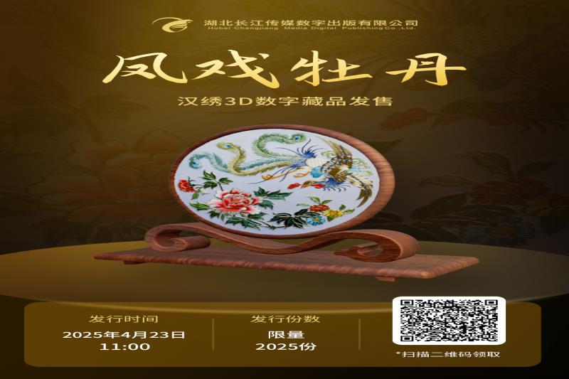 長江數(shù)字公開發(fā)行漢繡主題《鳳戲牡丹》3D數(shù)字藏品