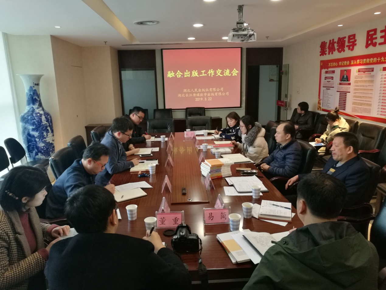 2019年3月22日,湖北人民出版社有限公司與湖北長江傳媒數字出版有限公司融合出版工作交流會在出版城16樓會議室成功召開。