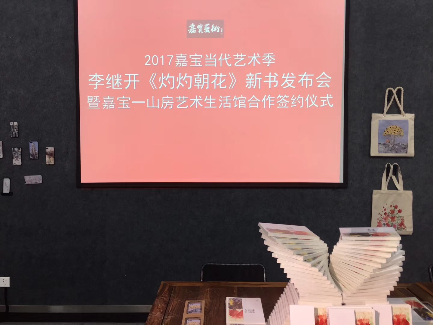 2017年12月16日15時,由湖北美術出版社、湖北嘉寶藝術有限公司主辦的李繼開《灼灼朝花》新書發布會暨嘉寶一山房藝術生活館合作簽約儀式