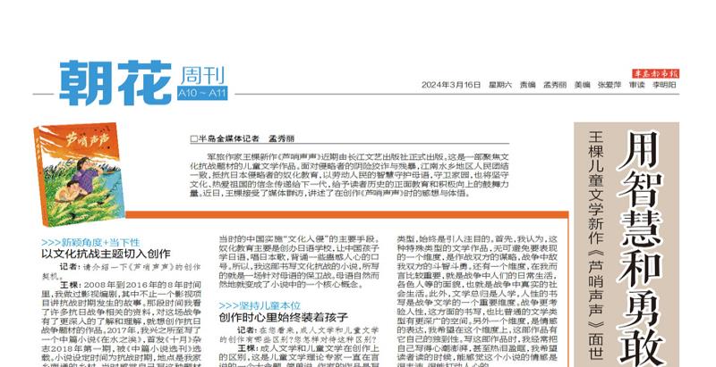 半島都市報(bào)∣用智慧和勇敢守護(hù)母語(yǔ)守衛(wèi)家園——王棵兒童文學(xué)新作《蘆哨聲聲》面世