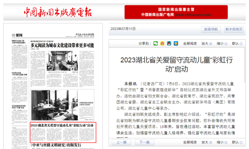 中國新聞出版廣電報∣2023湖北省關愛留守流動兒童“彩虹行動”啟動