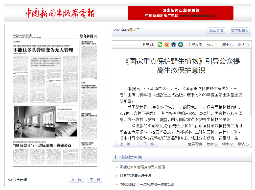 中國新聞出版廣電報 | 《國家重點保護野生植物》引導公眾提高生態保護意識