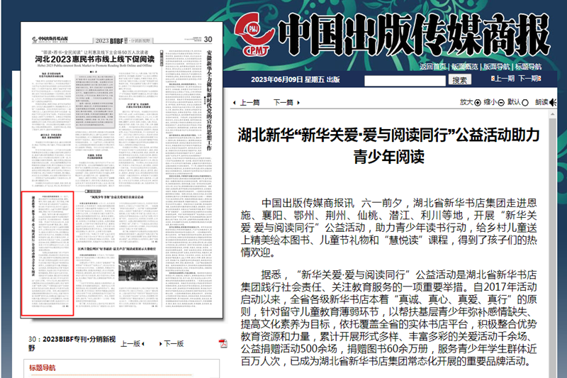 中國出版傳媒商報 | 湖北新華“新華關愛?愛與閱讀同行”公益活動助力青少年閱讀
