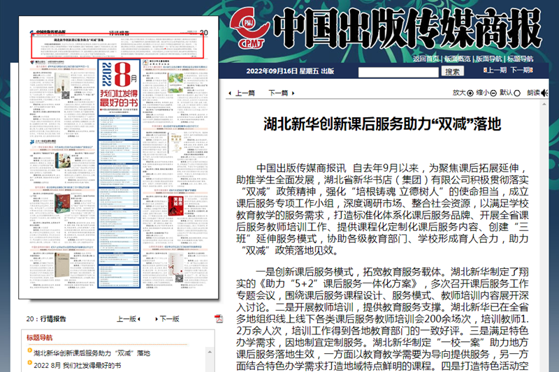中國出版傳媒商報 | 湖北新華創新課后服務助力“雙減”落地