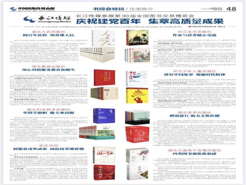 7月15日~19日,第30屆全國圖書交易博覽會將在山東濟南舉辦。長江傳媒旗下8家出版社以多部精品和重磅活動,亮相書博會,展示高質量出版成果。