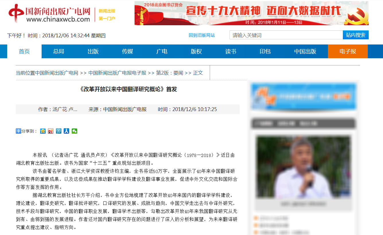 中國新聞出版廣電報|《改革開放以來中國翻譯研究概論》首發