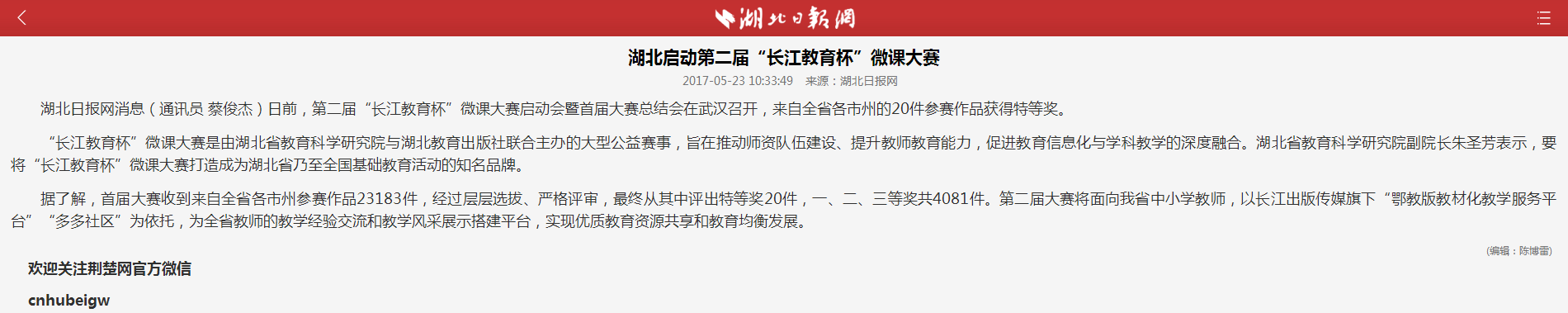 荊楚網:湖北啟動第二屆“長江教育杯”微課大賽