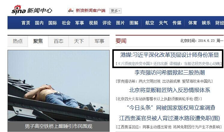 新浪新聞首頁報(bào)道《八項(xiàng)規(guī)定改變中國》