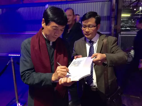 國(guó)際安徒生獎(jiǎng)?lì)C獎(jiǎng)晚宴現(xiàn)場(chǎng),曹文軒老師在《曹文軒畫(huà)本-草房子》扉頁(yè)為長(zhǎng)江少年兒童出版社題詞。