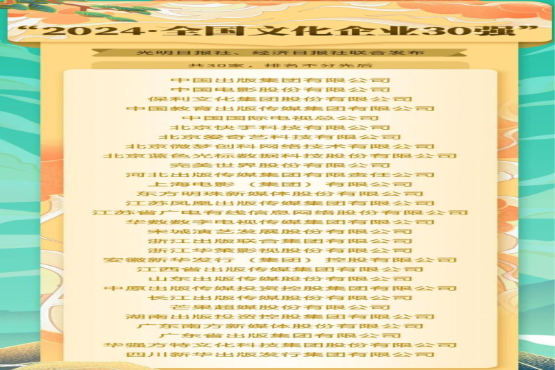 “全國文化企業30強”評選是我國文化產業領域最權威的評選活動之一,是反映我國文化產業發展和文化企業規模實力的重要品牌。本屆“30強”企業堅持把社會效益放在首位、社會效益和經濟效益相統一,截至2023年底合計凈資產5173億元,2023年度合計主營業務收入5026億元,合計凈利潤445億元。其中,合計凈利潤比上屆增加301億元,同比增長209%,盈利能力顯著增強。