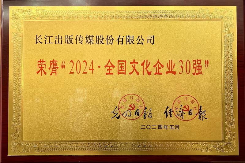 5月23日,第二十屆中國(深圳)國際文化產業博覽交易會在深圳國際會展中心開幕。在中宣部召開的2024文化強國建設高峰論壇期間,光明日報社和經濟日報社聯合發布“2024·全國文化企業30強”名單,長江出版傳媒股份有限公司成功入選。此前,長江傳媒控股母公司湖北長江出版傳媒集團有限公司五次獲此殊榮。