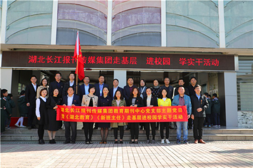 集團一行觀看了學校德育工作專題片,參觀了校園環境,觀摩了課堂教學,與全體師生一起參加了每周升旗儀式。在升旗儀式上,學校副校長易曉燕代表全校師生致歡迎詞。報刊集團黨委書記、董事長肖昌斌代表報刊集團致辭。集團副總經理袁遵敬為學校授予“黨建教育實踐基地”牌匾。集團教育期刊中心總監秦勝地向學校高厚平校長頒發“桂子山教育智庫”專家聘書,向沈誼芳、嚴昱娥老師頒發《小學生天地》特聘導讀師” 聘書。報刊集團還向學校贈送了《湖北教育》《新班主任》《小學生天地》《馬小跳作文版》《學校黨建研究》等書刊500余冊。《湖北教育》政務版執行主編鄢志勇宣讀了“十元錢·千分愛”主題活動倡議書。