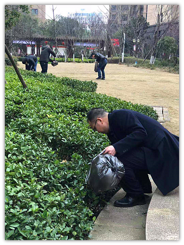 支部書(shū)記、總經(jīng)理韓敏帶領(lǐng)部分志愿者,手持清潔工具,分散行動(dòng),把整個(gè)小區(qū)綠植、草坪、轉(zhuǎn)角等易遺漏、不易打掃的區(qū)域細(xì)心地清理了一遍。