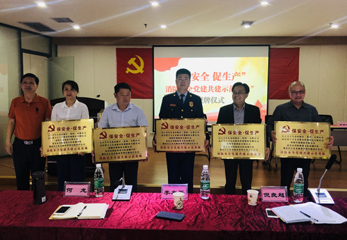 演練結束后,少兒集團黨委領導班子帶領本部及海豚支部黨員,與武漢市消防救援支隊南湖中隊、湖北長江東光物業管理有限責任公司、武漢愛立方兒童教育傳媒股份有限公司等單位在少兒集團四樓大會議室開展了“保安全 促生產”聯合主題黨日活動。