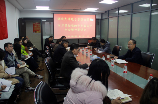 2020年1月3日,九通社舉行學習貫徹黨的十九屆四中全會精神宣講會,股份公司黨委委員冷雪給全社黨員干部宣講黨的十九屆四中全會精神。