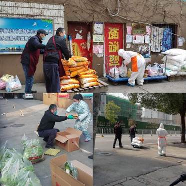 在做好防疫防控守護家園的同時,外文書店的黨員志愿者們積極參與協助社區采購大米、面粉、蔬菜等日常生活用品,逐戶分發給社區內省土地局、省審計廳、省國資委、省中醫院等各單位居民,幫助社區內居民共渡難關。