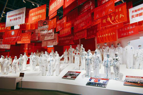 本次展覽通過1000余張照片和實物展品,以及33處精心設計的大型場景等,沉浸式地對新冠肺炎疫情期間全國各地人民眾志成城、共克時艱的故事進行了還原。其中既有各地援鄂醫療隊員支援武漢的場景,還有火神山、雷神山醫院建設現場,方艙醫院實景等,集中生動地展現了以習近平同志為核心的黨中央團結帶領全國人民打贏疫情防控阻擊戰,奪取全國抗疫斗爭重大戰略成果并全面恢復生產生活秩序的偉大歷程。一幕幕動人心魄的畫面,一個個歷歷在目的場景,無不令參觀者動容。