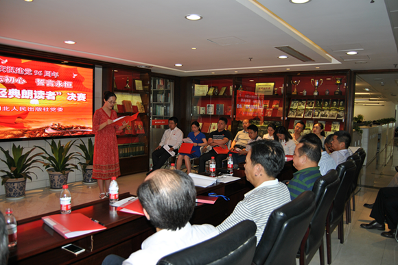 7月20日下午,人民社全體在職黨員歡聚一堂,在社15樓陳列大廳隆重舉行“不忘初心誓言永恒——紅色經典朗讀者”活動決賽。集團(股份)公司黨委委員趙亞平副總經理、黨群工作部李正武部長在百忙之中蒞臨指導并擔任評委,為決賽選手們鼓勁加油。