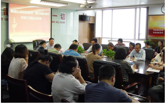 隨后,崇文國際黨支部書記胡銀華表示,希望崇文國際全體黨員認真學習、深刻領會耿總的黨課內容,并將習總書記“7·26”重要講話精神貫徹落實到工作當中。要求大家不忘初心、繼續前行,創新思維、腳踏實地將各項工作抓好,圓滿完成集團下達的工作任務,推進公司快速發展。