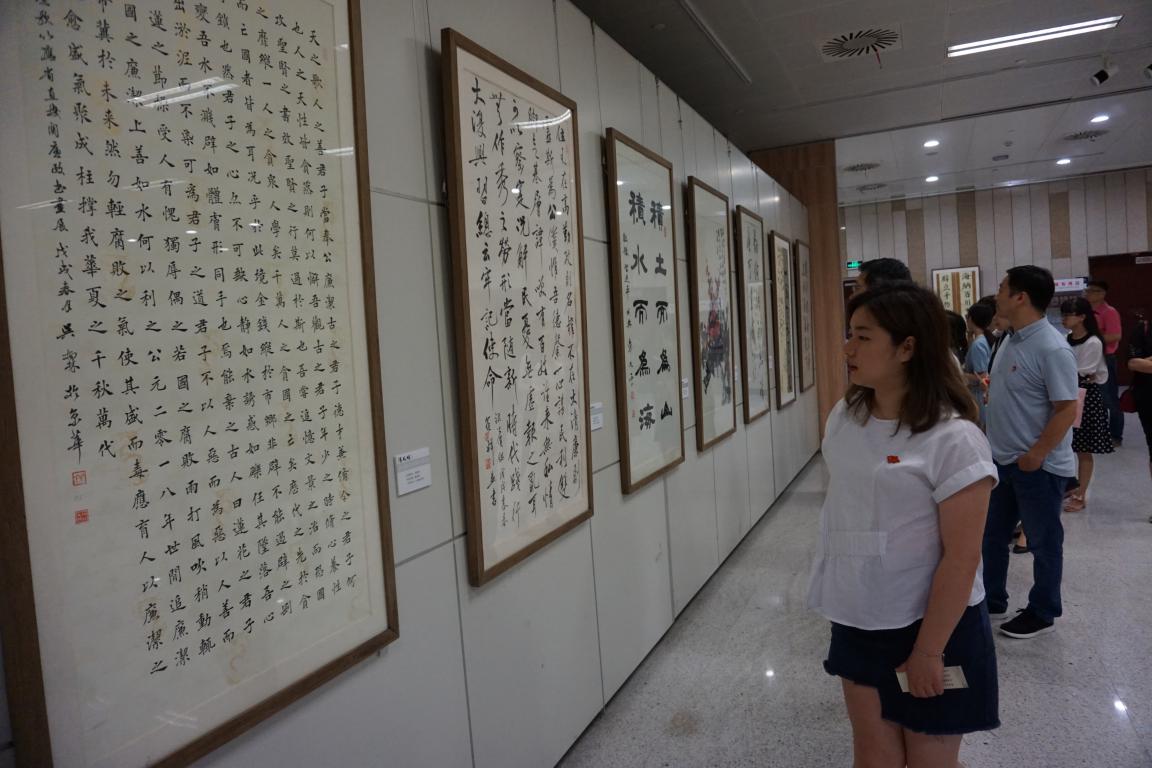 “清風(fēng)頌”廉政書畫展以“不忘初心跟黨走,牢記使命再出發(fā)”為主題,作品內(nèi)容多為歌頌清廉、公正、律己勤政,有的援引箴言警語以示自省,有的摘錄史鑒古為今用,有的借用蓮花、梅花、松樹等寓意清廉高潔……一書一畫,都深深浸潤著“廉潔”二字,傳遞著清風(fēng)雅韻、滌蕩心靈的廉政文化。大家仿佛置身于一條跨越時空的文化長廊,暢游其中,有的獨自駐足,靜靜品味;有的三五成群,品評交流;有的聆聽講解,靜心思索,在欣賞翰墨丹青魅力的同時,接受著一場底蘊深厚的廉潔文化教育。
