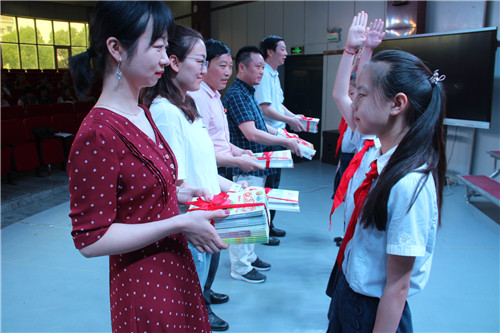 在贈書儀式上,學校黨總支書記、校長高厚平同志代表全校師生向報刊集團一行表示熱烈歡迎,向集團長期以來對學校工作的支持表示衷心感謝。他表示,學校將繼續堅持“圍繞教育抓黨建,抓好黨建促發展”的工作思路,拓寬工作渠道,創新工作方式,促進辦學質量的提升。學校學生成長中心張慧副主任宣讀了《關于開展“愛我中華——新中國成立70周年”愛國主義主題教育活動倡議書》,倡議全校師生利用暑期多讀書、讀好書。
