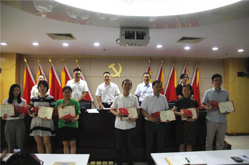 會議表彰了一批“守初心、擔使命”的優秀共產黨員和先進黨組織,黨委成員為榮獲報刊集團先進黨支部、優秀共產黨員、優秀黨務工作者,以及股份公司先進基層黨組織、先進(生產)工作者、“五四征文”二等獎的集體與個人頒發了榮譽證書。會上,黨委委員、副總經理黃燕為2名新加入黨組織的黨員佩戴了黨徽,鞭策和激勵他們時刻不忘入黨初心,并牢記黨員的政治責任和歷史使命。