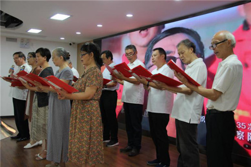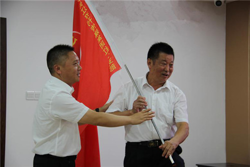 會議最后,紅七支部黨員代表深情演繹了歌曲《我和我的祖國》,極具穿透力和感染力的演唱吸引了所有參會人員“唱響同一首歌”。會議還為紅七支部舉行授旗儀式,肖昌斌表示,退休黨員們退休不褪色、離崗不離黨的精神,無愧共產黨員的初心,是所有年輕同志學習的標桿。