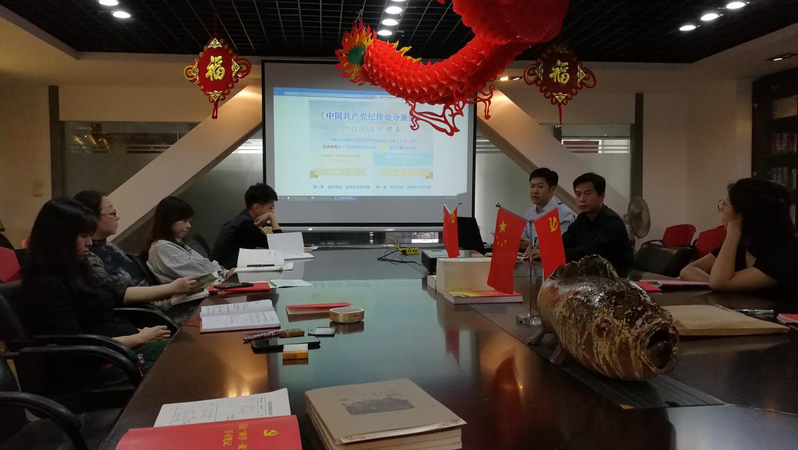 9月27日上午,湖北美術出版社第一黨支部在18樓會議室召開以學習《中國共產黨紀律處分條例》為主題的支部黨日活動。會議由支部書記徐禮永主持,現場學習氣氛嚴肅認真,同志們逐字逐句學習新條例并交流體會,取得了較好的學習成果。