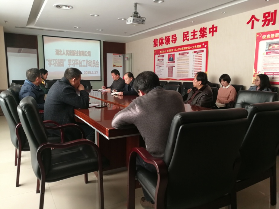 為認真貫徹落實中宣部和省委宣傳部、長江出版?zhèn)髅郊瘓F關于“學習強國”學習平臺推廣應用有關會議精神,1月17日,湖北人民出版社第一時間組織召開了使用“學習強國”平臺學習工作動員會,要求全體黨員高度重視,積極參與,做到橫向到邊、縱向到底。動員會后,各黨支部隨即召開支部會議,組織黨員下載并注冊“學習強國”APP,迅速搭建起人民社的學習組織架構。