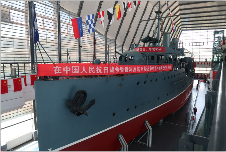 跟隨講解人的腳步,大家進入了中山艦博物館。首先,講解人向大家介紹了中山艦的來歷:中山艦,原名“永豐艦”,它隸屬于北洋政府海軍第一艦隊。1922年6月孫中山先生曾登臨該艦,指揮平叛斗爭長達50余天。為紀念孫中山先生,人們將其改名為中山艦,并在其沉沒地附近修建起中山艦博物館,以此告誡世人要不忘歷史、珍惜眼前。