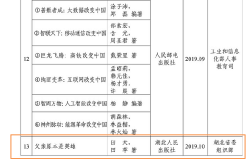 其中,《父親原本是英雄》被列入綜合知識類精品教材。該書以長篇報告文學形式描寫“全國優秀共產黨員”“時代楷模”“感動中國人物”榮譽稱號及“共和國勛章”獲得者張富清,是一部兼具歷史性、時代性與藝術性的報告文學作品,再現了老一輩共產黨人對國家、對黨、對人民的無限忠誠與無私奉獻,并以此生動而形象地刻畫出一位盡忠于黨、盡責于國、盡心于民,終其一生而不改本色的英雄形象。此前,該書獲得由中國作家協會、國家民族事務委員會共同主辦的國家級文學獎——第十二屆(2016—2019)全國少數民族文學創作駿馬獎。