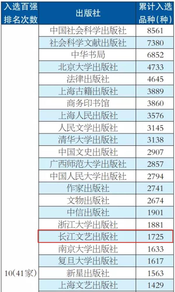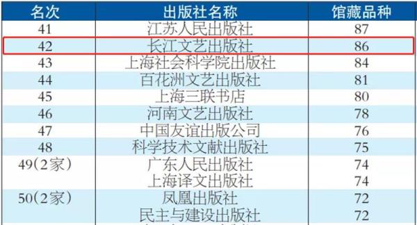 (通訊員 韓澍東)近日《2021年中國圖書海外館藏影響力報告》由中國出版傳媒商報獨家發布,2021年度共有467家出版社的17300種中文圖書進入海外圖書館系統永久收藏,長江文藝出版社連續十年躋身100強,累計入選品種1725種,2021年以86個品種位列第42名。