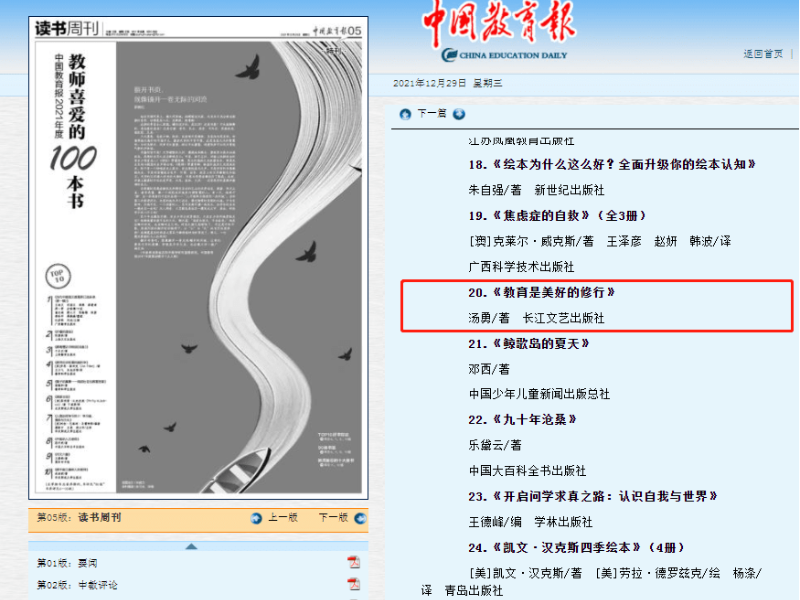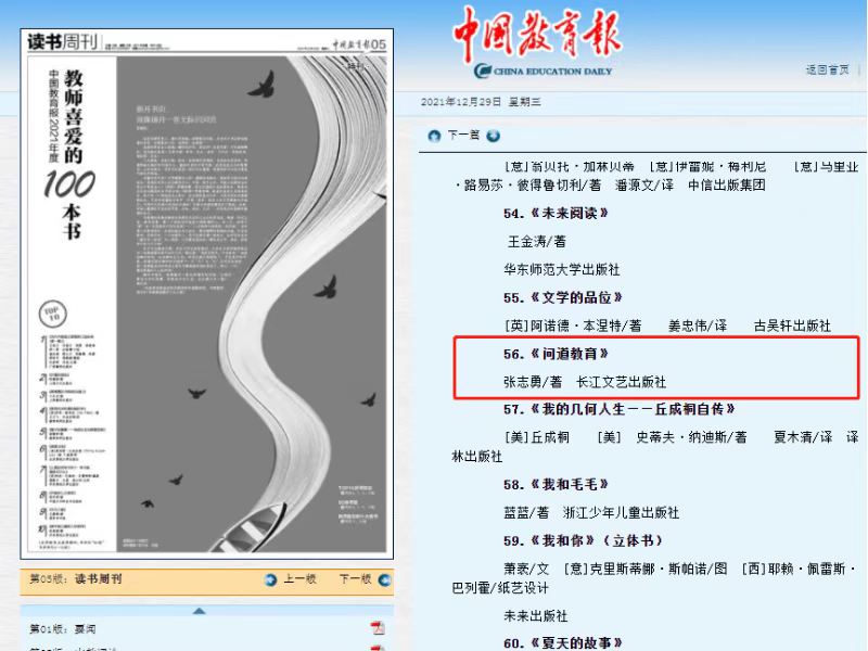 喜報!《教育是美好的修行》《問道教育》入選中國教育報2021年度教師喜愛的100本書