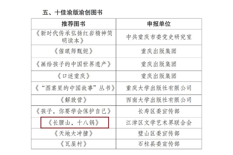 長少社《長腰山,十八鍋》獲評“十佳渝版渝創(chuàng)圖書”