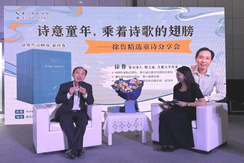 9月28日,作為“書香長江”閱讀周武漢書展暨第十九屆華中圖書交易會的活動之一,徐魯精選童詩分享會以“詩意童年,乘著詩歌的翅膀”為主題,于武漢國際會展中心圓滿舉行。此次活動由閱讀推廣人、金牌講書人蔣璐主持,著名詩人、散文家、兒童文學作家徐魯與眾多熱愛詩歌的讀者們分享了他的童詩創作中的詩心與詩意。
