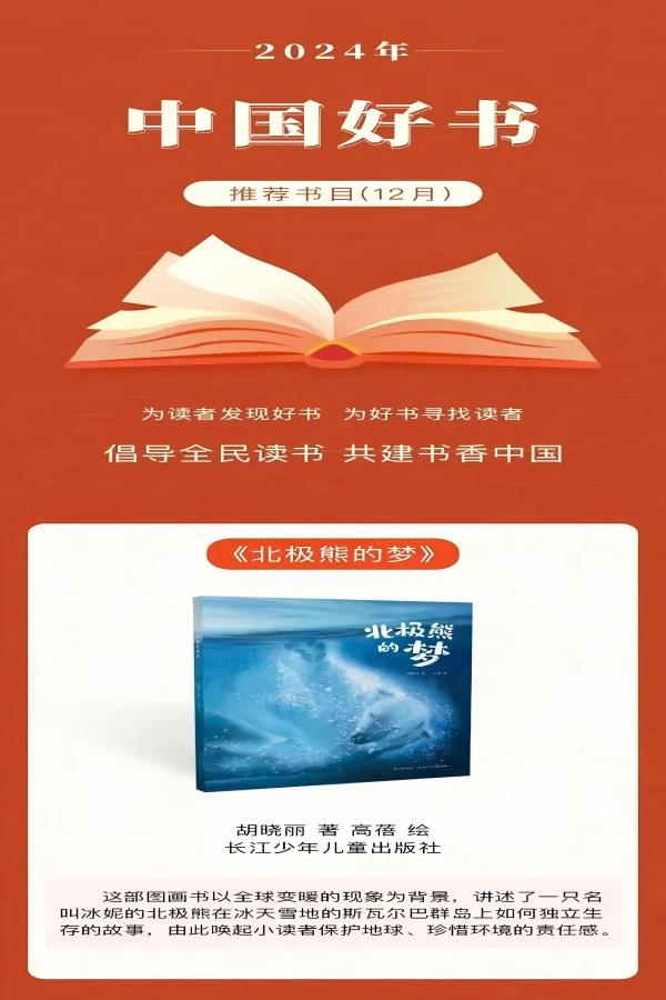 2025年1月9日,中國圖書評論學會2024年12月“中國好書”推薦書目發布,長江少年兒童出版社出版的《北極熊的夢》入選。