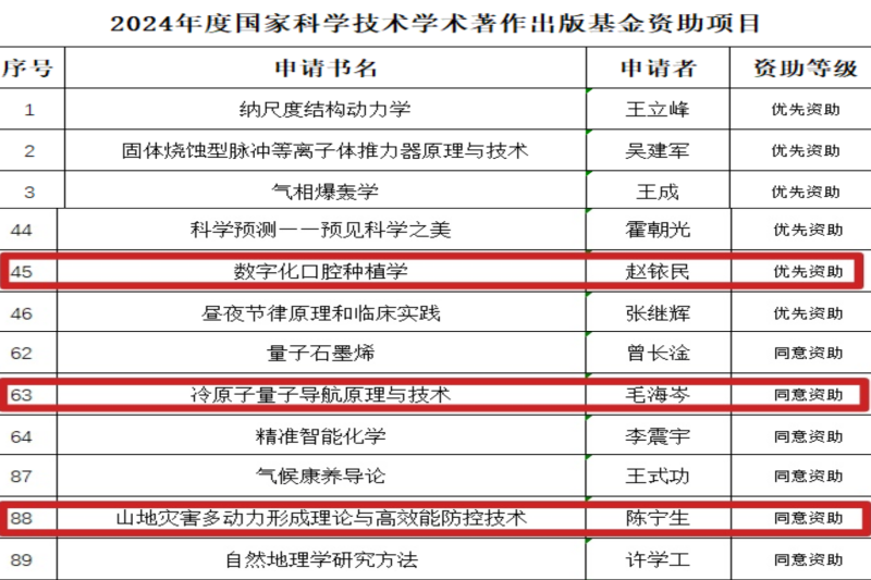 近日,國家科學技術學術著作出版基金委員會辦公室公示了2024年度國家科學技術學術著作出版基金資助項目名單。湖北科學技術出版社《數字化口腔種植學》《冷原子量子導航原理與技術》《山地災害多動力形成理論與高效能防控技術》三種圖書入選。