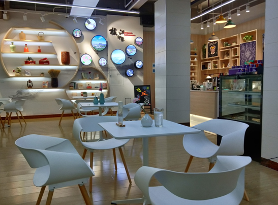 其中,咖啡茶飲生活美學區有反映枝江元素的【枝江印象】,陳列枝江非物質文化遺產——枝江白酒、步步升手工布鞋,以及關于枝江歷史文化和當今城鄉面貌的圖片圖書,供讀者欣賞閱讀,方便更多的人了解枝江、走進枝江。